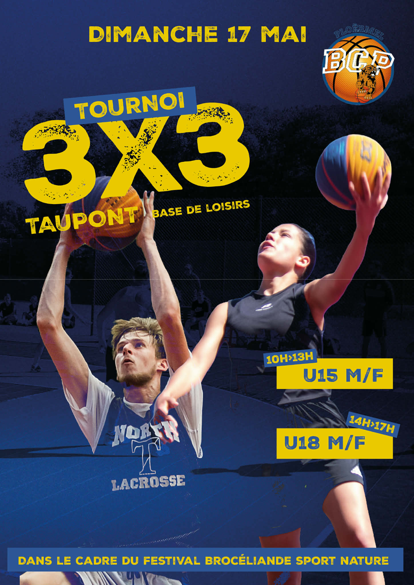 Dans le cadre du Festival Brocéliande Sport Nature, le BCPloërmel s’associe à Ploërmel Communauté pour organiser un Tournois 3×3 en extérieur sur 2 terrains officiels spécialement montés pour l'occasion, pour les U15 et U18 Féminin et Masculin.